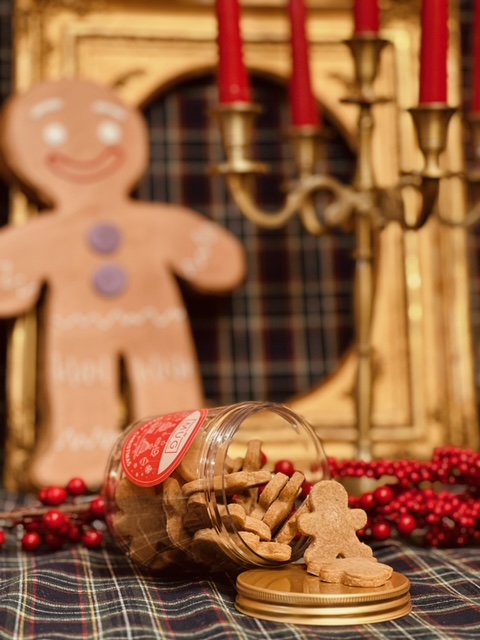 Un bel vasone pieno di deliziosi biscottini di pasta frolla finissima al burro, aromatizzata con le spezie del Natale (cannella, cardamomo, zenzero, chiodi di garofano e noce moscata).